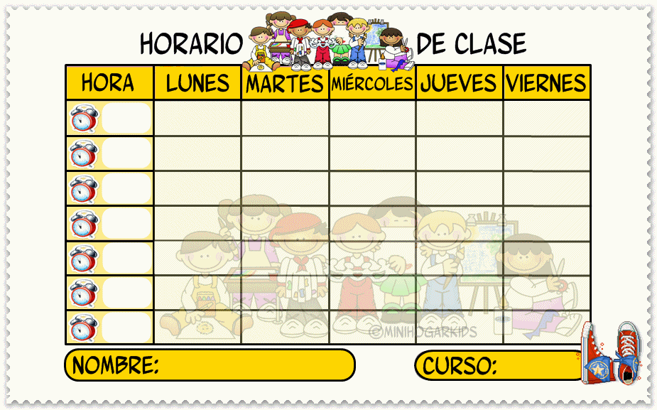 Recursos para Educación Infantil: Horarios para el curso .... Si has llegado a esta página seguramente sea porque estés buscando los mejores cuadernos para niños en pdf. Muchos padres queremos que nuestros niños sean más responsables en sus actividades diarias o en clases, nos preguntamos qué método usar muy bien una de las formas para lograr que sean más ordenados es utilizar un horario. Horarios escolares para imprimir con dibujos. Descarga ahora nuestros cuadernos para imprimir en pdf. Los horarios tienen un tamaño din a4, así puedes imprimirlos. Ver más ideas sobre horario para niños, niños, comida bebe 6 meses. Además los colores y dibujos le ayudarán a animar su rincón de estudio. Si estabas buscando un horario para clases o una plantilla de horario escolar, este es tu sitio. Navega por la web para descubrir todos los modelos disponibles. Si necesitas un horario escolar para imprimir o una plantilla de horario para clase , y así poder imprimirlo bonito y fácil, este es tu sitio. Hemos recopilado muchos formatos de horarios para imprimir para que lo tengas fácil. El formato atractivo de estas plantillas de horario escolar para niños de primaria les ayudará a recordarlo y que lo acepten en el entorno de estudio. Los horarios tienen un tamaño din a4 o tamaño folio, puedes imprimirlos. Horarios para imprimir disponibles para descargar gratis. Horarios para imprimir semanales gratis, podrás encontrar diferentes modelos para descargar.