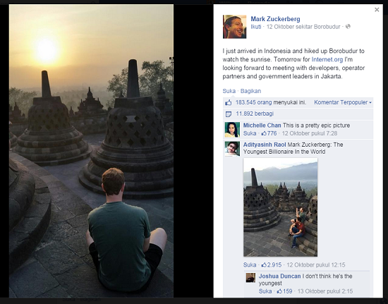 Si Juragan Facebook, Mark Zuckerberg Bertemu dengan Joko ... - Saya Baru Saja Tiba Di Indonesia Dan Mengunjungi Borobudur Untuk Menyaksikan.